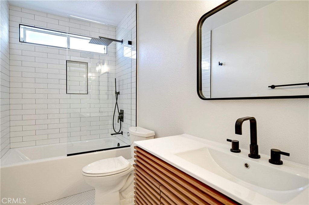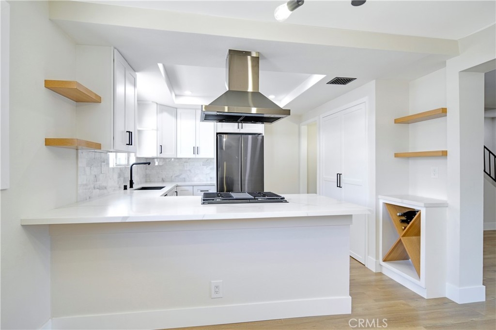 Beautifully designed with no expense spared, this END-UNIT designer townhouse in “Tarzana Gardens” community. This townhouse offers 3 bedrooms & 2.5 baths conveniently located in the back of the complex and it boasts designer upgrades throughout. An open concept DESIGNER kitchen with new cabinets, Calcutta quartz counter tops, black matte hardware, French Oak open shelves, custom dry bar, and brand new Black Stainless - Steel appliances. Living area features recessed lighting, a new electric LED Fireplace, and a chic & stylish powder room. Wide plank flooring and solid core shakers doors throughout along with custom black AC registers. As you make your way upstairs, you will be surprised by carefully crafted tile work in both bathrooms that feature marble, designer faucets, deep soaking tub, fashionable vanities, and custom wall paper. Other updates include shaker closet doors, new water heater, new HVAC, window treatment, and hardware accessories. Direct entry from the oversized GARAGE & a dedicated BONUS laundry area. The gated “Tarzana Gardens” community features a pool, spa, and tennis court. The HOA covers, insurance, amenities, and trash service. Prime location places it within minutes from Ventura Blvd, places of worship, shops, restaurants, and easy freeway access.