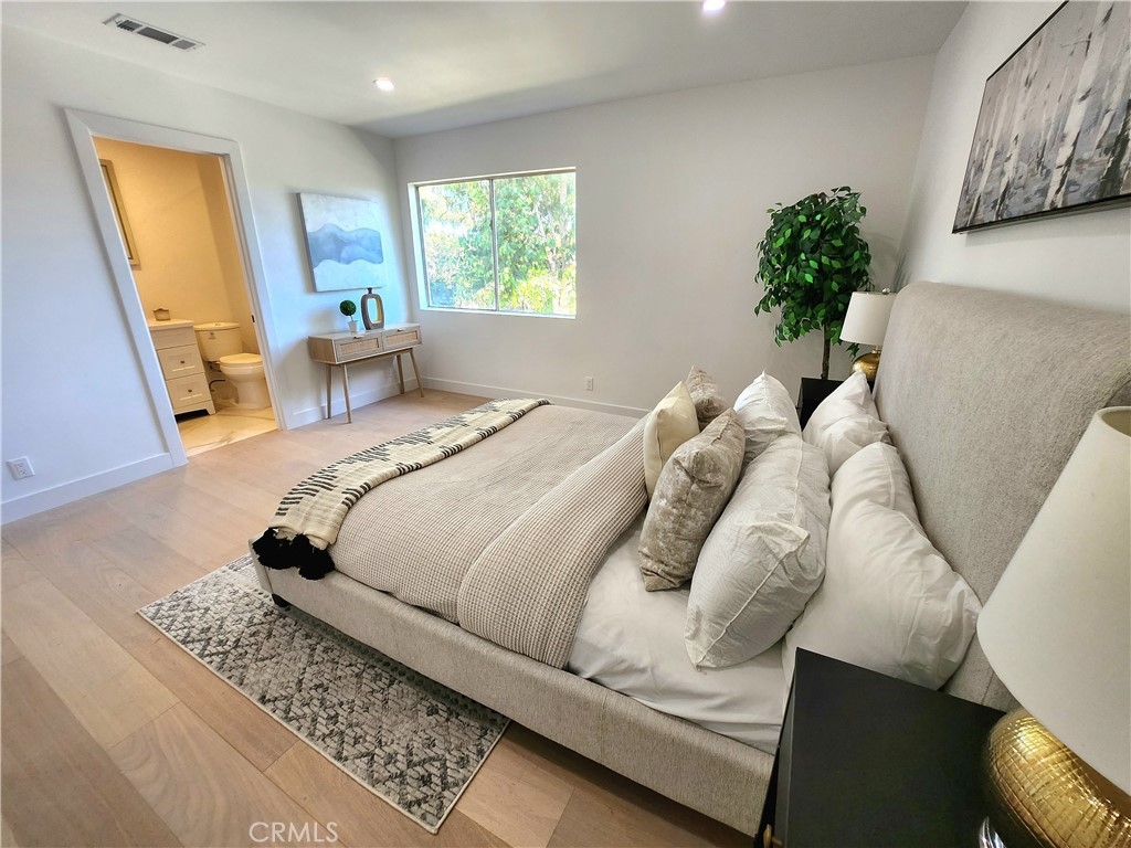 BEST PRICES CONO IN THE VALLEY...COMPLETLY UPDATED, RARE almost 1700 sqft 4 bedroom 3 bath unit located in the heart of the valley in Tarzana near Ventura Blvd, close to restaurants and shops. This unit is p of the largest units in the complex. Completely remodeled with the best quality and craftsmanship. It boasts elegant stone imported from Spain and extravagant Brazilian white oak engineered hardwood. In addition to its entrance from the complex, this one of a kind unit offers a separate entrance on Collins Street, which leads to a private studio suite adjoined to the unit via a connecting door with its own bathroom and closet that can be used as a home office, in-laws quarter or gym. The living room offers extraordinary attention to detail with gas fireplace and a sleek natural stone slab wall . The kitchen is a chef's dream with plenty of cabinetry, storage space, large sink, and lustrous Calacatta countertops. The bathrooms are designed with a combination of dazzling mosaic and natural stone with Bluetooth speaker ventilation fans. Natural light and LED recessed lighting throughout the unit allowing the opulence of this home to shine throughout every corner. Each bedroom has a large closet with plenty of storage space. Good size master bedroom with large closet and updated master bathroom. 3 car designated parking spaces. This unit is part of a well maintained and clean complex which offers a large pool and jacuzzi, basketball court, recreation room, and playground. HOA include earthquake insurance, gas, water, sewer charge and cable. The unit feels very much like a home