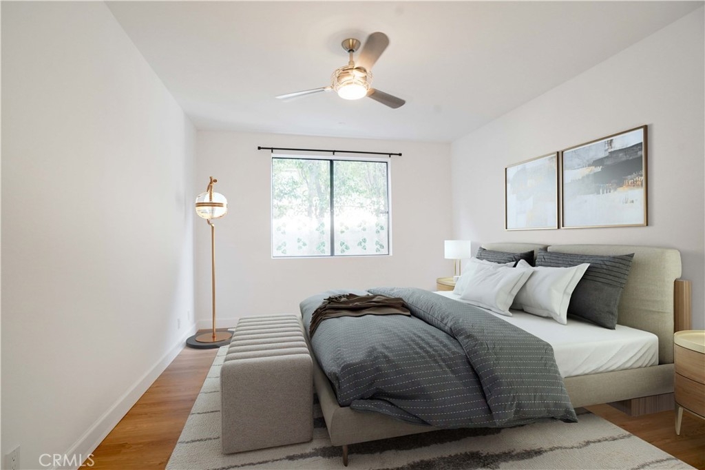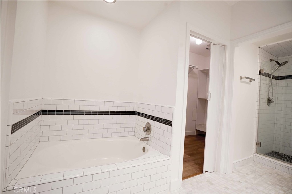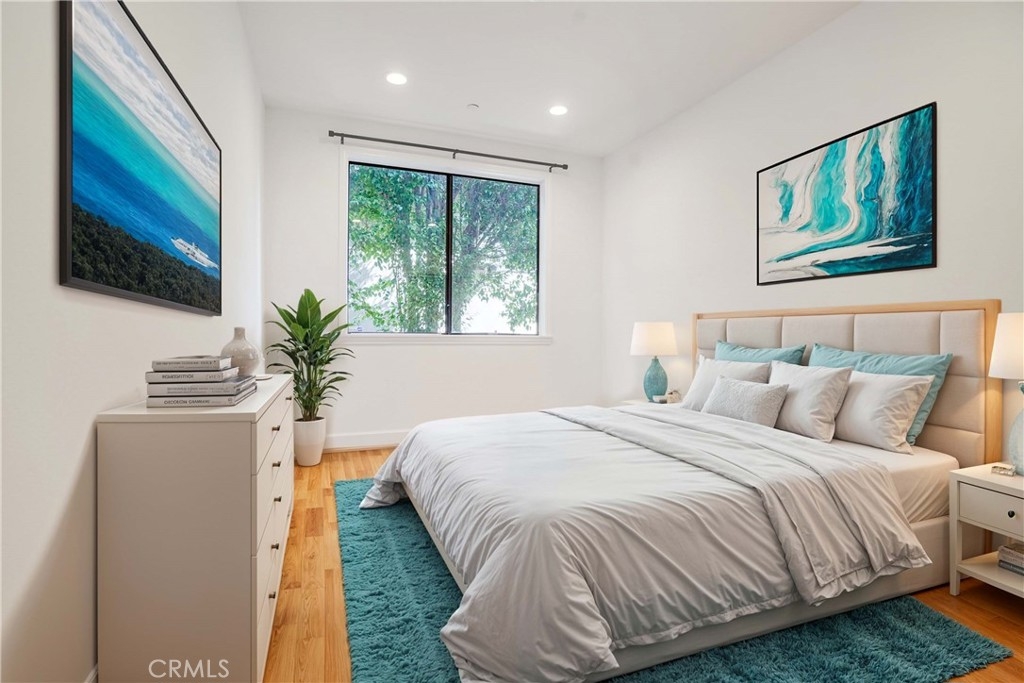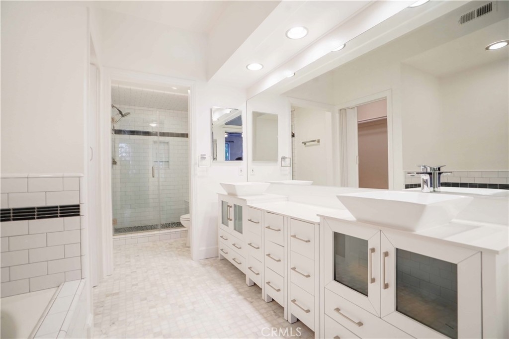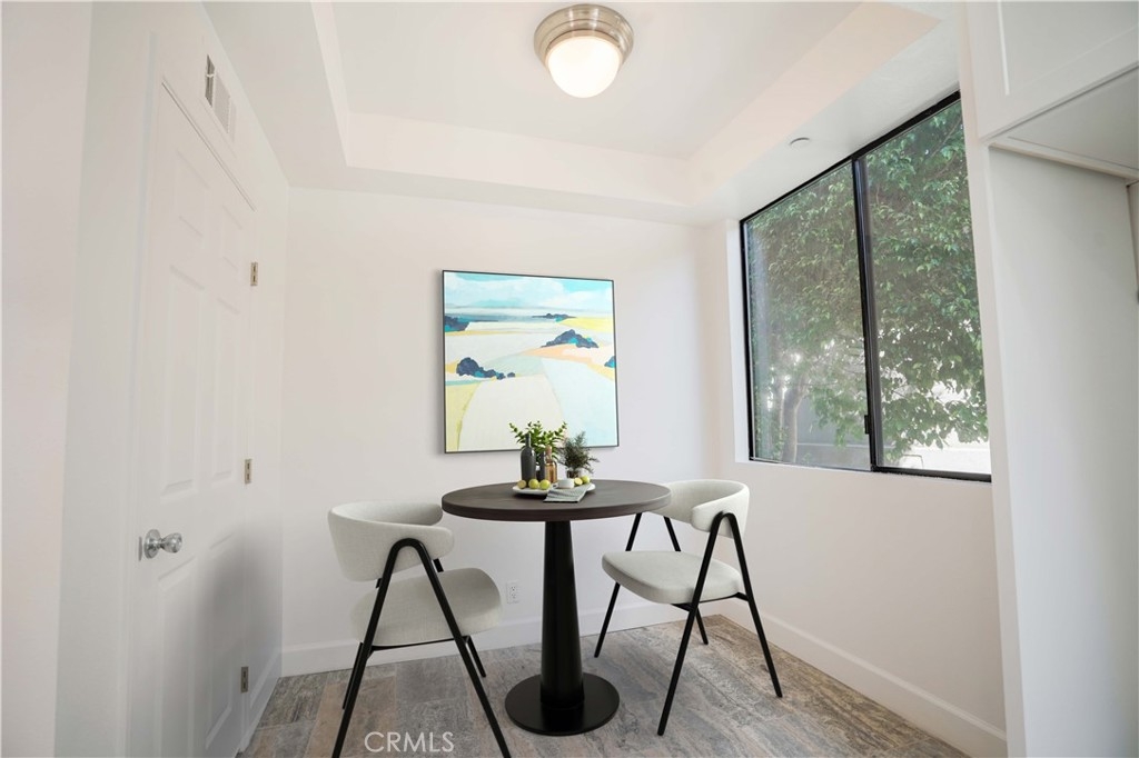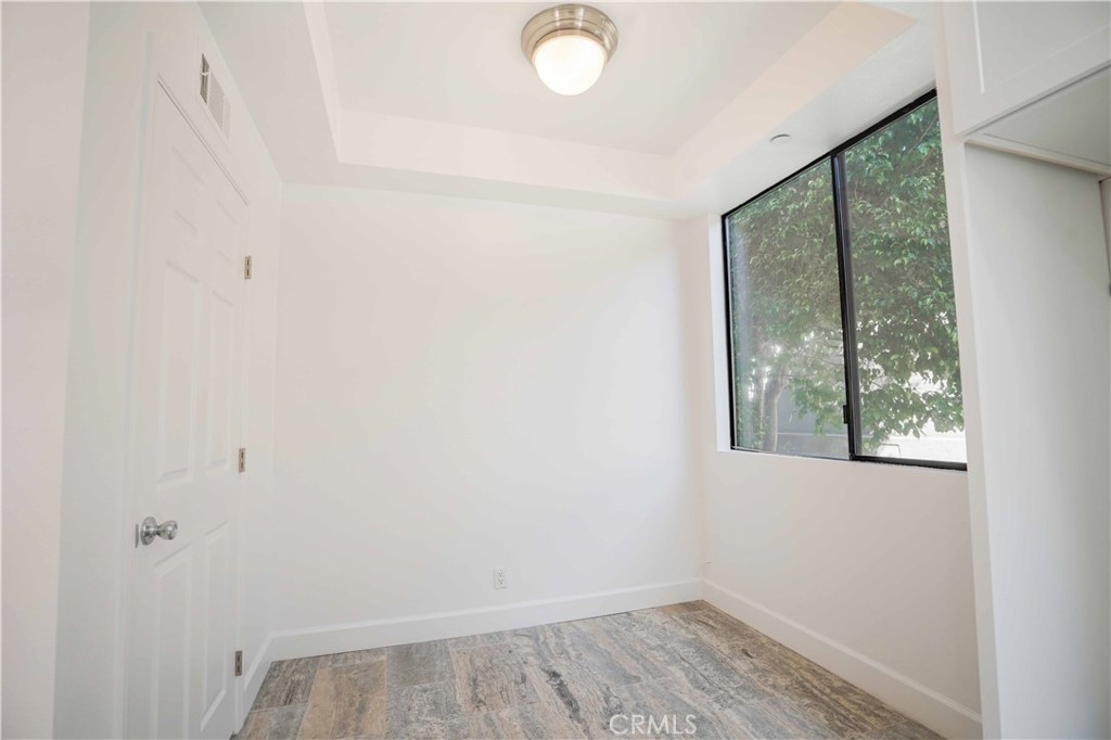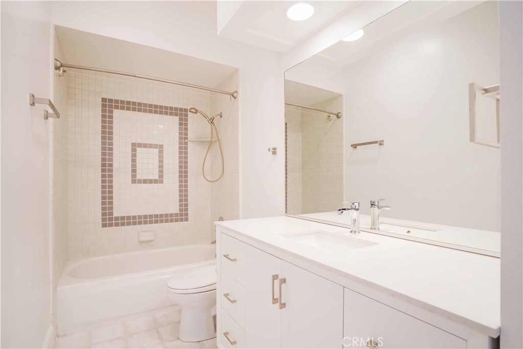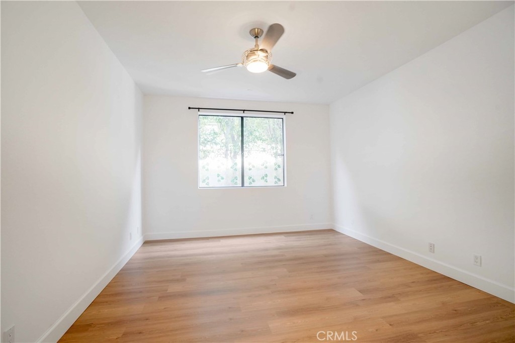 This gleaming newly updated single story condo is set above the ground level in sought after Tarzana in a great location is ready to move into. Features include luxury scratch-resistant engineered wood- like flooring that runs throughout the freshly painted interior with smooth high ceilings, recessed lights, raised panel doors, & upgraded light switches. As you enter the bright living room your eye is drawn to the patio balcony and view beyond accessed through large sliding doors which serve the living room and formal dining area. A newly refaced limestone fireplace warms these main living areas. The dine in kitchen features new white cabinetry with self-closing hinges, gray quartz counters, stainless steel Kitchenaid 4 burner gas stove with upper microwave and exhaust fan, kitchenaid dishwasher, stainless steel farm sink with pot filler faucet, garden window, & a large laundry room with upper cabinets. Down the wide hall to the main bathroom with a tub/shower combo, & new white vanity with engineered marble countertop. Adjacent to that is a secondary bedroom that faces east w/lg window & mirrored closet. The ensuite primary bedroom also faces east and has a spa-like attached bathroom complete with walk in closet w/ built ins, a tub, separate walk in shower w/glass doors + a bench seat & new white vanity cabinets w/dbl. raised modern sinks & engineered marble countertop. This is a security complex w/18 units, locked main door entrance, gated parking with two tandem spots, apx. 4 guest spaces, storage, community room, & central courtyard. All the great shopping is within walking distance!
