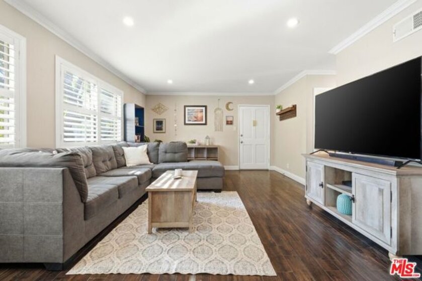 FHA APPROVED! Welcome to this beautifully updated second floor retreat. Inside, rich laminate plank flooring and elegant plantation shutters complement the bright, open floor plan. The updated kitchen features stainless steel appliances, including a built-in microwave and dishwasher, along with a rare walk-in pantry that adds exceptional storage. Relax and recharge in the remodeled bathroom, complete with a large soaking tub that's perfect for unwinding at the end of the day. Parking is easy with two spaces: an assigned covered spot with storage located close to the unit, plus a second space in the nearby gated lot. Enjoy resort-style amenities including three pools, two spas, a recreation room, BBQ areas, a play area, and a basketball court. The HOA adds tremendous value by covering hot and cold water, trash, cable, earthquake insurance, high-speed Spectrum internet, and a premium streaming package featuring Disney+, HBO Max, Paramount+, Peacock, and more. Ideally located near the 101 and just minutes from Ventura Blvd's shopping, dining, and coffee shops this is low maintenance living in a location that truly delivers.