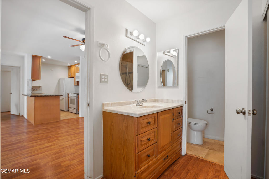 Welcome home to this 2 bed 2 bath condo located on the 1st floor in the gated Parc Tarzana community. As you walk in you will immediately notice the great floor plan with one of the largest patio areas, and natural light. The kitchen comes equipped with a stone backsplash and white Kenmore appliances. For added privacy, each bedroom has its own bathroom and is located on a separate wing. The master retreat has a large closet, and a sleek tile shower. BBQ and host family and friends in the spacious private patio which has direct access to the 2 assigned parking spots. Other features of the property are central A/C, and ample storage. HOA amenities include: pool, rec room, gym, multiple community laundry rooms, and gated entrance. This is a great place to call home.