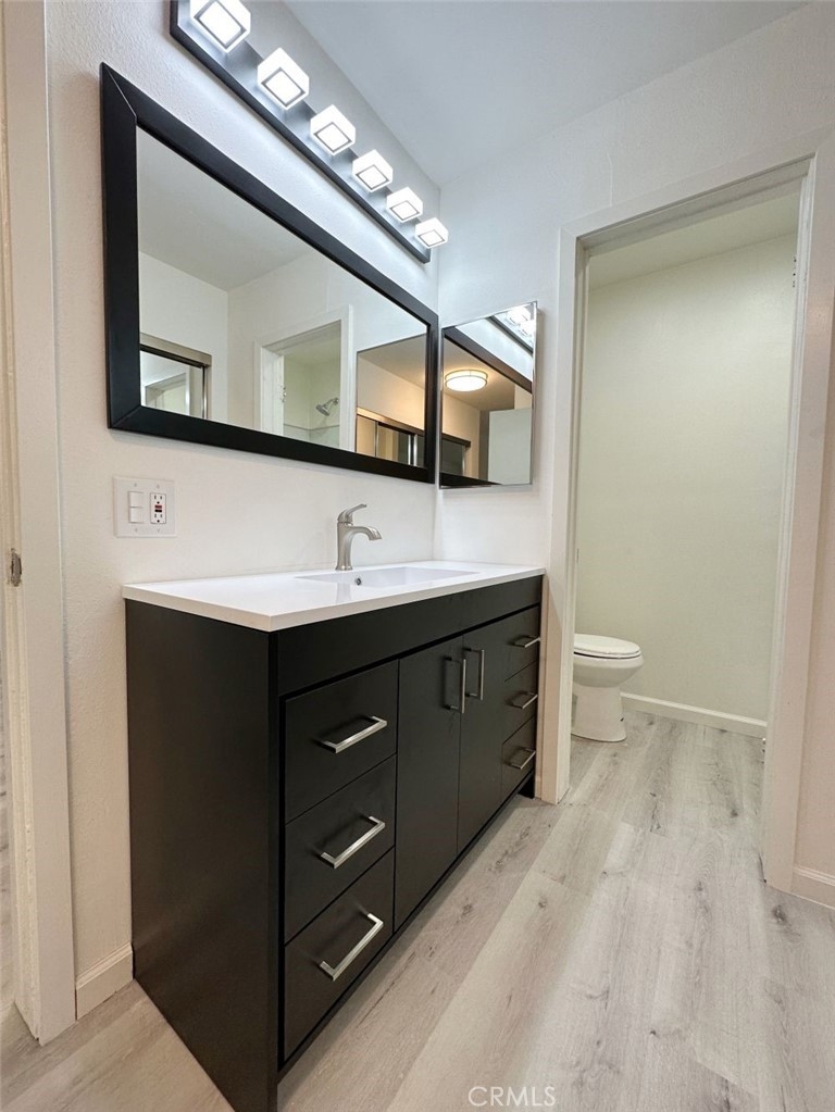 BACK ON MARKET! Completely remodeled condo with large outdoor fenced patio. Great for entertaining and plenty of outdoor space for plants and furniture. Unit has New Designer Kitchen with New Built in Appliances, Vinyl Flooring throughout. Bathrooms are completely remodeled, and one has a full bathtub and the 2nd has a separate shower. Extra Large Vanities and ample storage areas. Unit has new AC split system in the bedroom. This unit shows extremely well and is priced to sell....