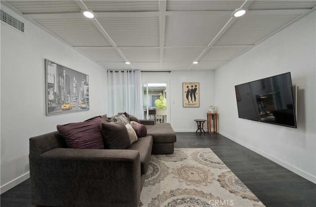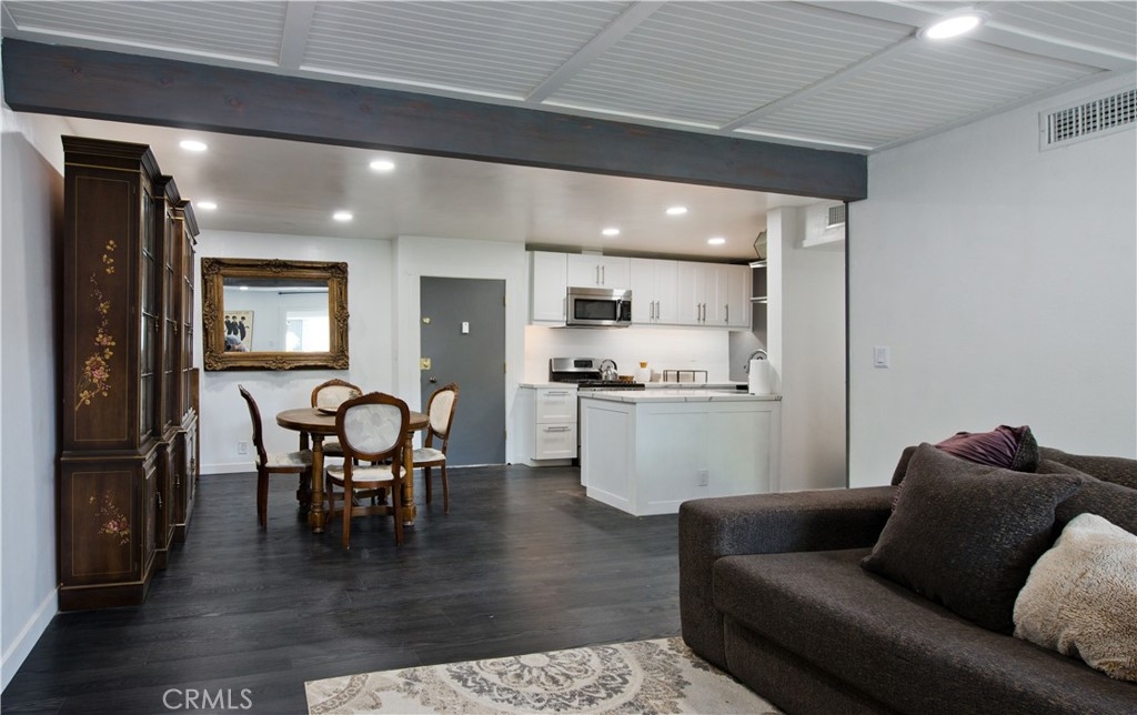 Welcome home to this stunning remodeled 3 bedroom, 2 bathroom condo offering 1,103 sqft! Open floor plan boasting a newly renovated kitchen with white shaker cabinetry, subway tile backsplash, and deep sink. Spacious dining area and large living room with exposed beam, board and batten accent ceiling and recessed lighting. Large bedrooms with ample closet space and desk area. Master suite with wall to wall closets and full bathroom complete with updated tile and charming vanity and lighting. Updated flooring throughout, new HVAC system, double pane windows and sliding glass door, fresh paint, and much more. 2 side by side covered parking spaces, community pool, rec room, water, trash and sewer included in HOA.