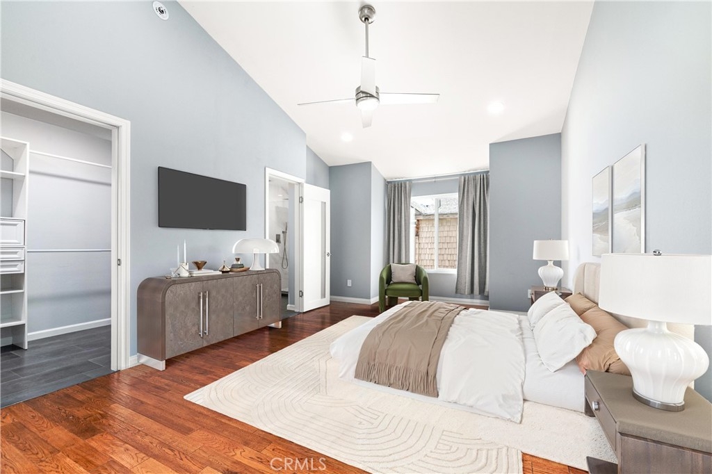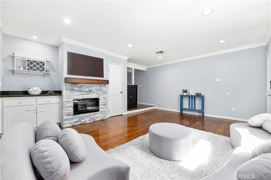 SELLER TO COVER UP TO 6 MONTHS OF HOA DUES FOR BUYER! Step through the door to volumes of light, soaring ceilings, and gleaming hardwood floors. A romantic electric fireplace anchors the living room, perfectly paired with a chic bar for easy entertaining. The heart of the home—a refreshed kitchen—combines a practical island with stainless steel appliances and an intimate dining area that keeps cooking and conversation connected. Upstairs, discover two generously sized primary suites, each with a fully renovated bathroom featuring modern fixtures; one suite adds the luxury of heated tile floors for crisp L.A. mornings. A convenient, updated powder room serves the lower level, and an in-unit laundry nook streamlines daily living. Open the door to a private, lush patio—your spot for morning coffee, evening wine, and effortless indoor–outdoor flow. Smart-home essentials include a Ring alarm system, smart locks, Nest thermostat, and dimmable LED recessed lighting, while dual-pane windows and a newer AC unit keep things comfortable and efficient year-round. Community perks deliver resort-style ease: low HOA fees including water and trash, plus a sparkling pool and hot tub just steps from your door. Park with confidence in two side-by-side subterranean garage spaces equipped with an electric car charger, direct unit access, and store everything neatly with two generous storage units. Location seals the deal—blocks to Ventura Boulevard and its constellation of cafés, eateries, Whole Foods, Starbucks, and boutique shopping. This is Tarzana living at its most convenient and comfortable.