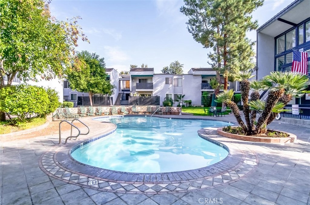 California Place - Resort Like living - First-floor, corner unit with 2 bedrooms + 2 Baths, almost a 1,000 SF in a gated complex with ponds, streams, pool, spa, BBQ, clubhouse, sauna, and gym. Light and bright condo with a large balcony out of the living room and one small balcony out of the master bedroom. Laminated wood floors in the entrance, dining and second bedroom, designer carpet in the living room and the master bedroom. Large second bedroom with an abundance of storage. The kitchen has a window that opens to the balcony. HOA dues include water, gas, earthquake insurance and grounds maintenance. Well managed complex Great location within the complex. The unit comes with 2 assigned parking spots. Centrally located, easy access to the 101 and 405 Fwys and the Orange Line.