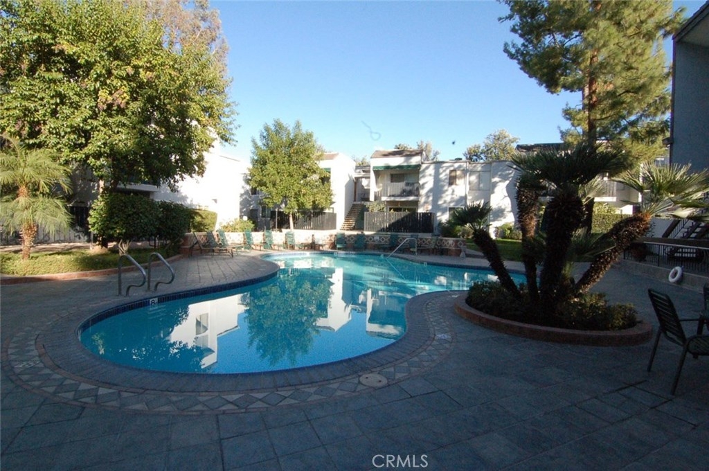 REDUCED Owner wants it sold ASAP! TOTALLY REMODELED and shows like a MODEL HOME with upgraded kitchen, beautiful granite counter tops, custom espresso cabinets, Jenn-Air Appliances Built-In French Drawer Refrigerator, Double-Oven, Dishwasher, Convection Microwave, Kohler Porcelain Extra Deep Sink, lots of extras! Lazy Susan pull out, under cabinet halogen lighting, and under cabinet wine glass rack, pull out caddy under kitchen sink and lighting over bar. Wood floors in living room, dining room, kitchen, and hallway. New Ceramic Wood floors in the bedrooms and patio. Upgraded patio door and large window in living room, patio door opens on both sides, Professionally designed closets in both master bedroom closets. Large, private patio with storage. NEW A/C installed in 2015. The Clubhouse has a gym, pool table and lots of comfortable seating to read or relax. Pool, Spar and newer stainless BBQ’s. Seller just spent thousands on new flooring and other upgrades. Large, well-maintained laundry facilities. Property has lots of trees and ponds throughout. Tandem covered parking with storage area. This is a gated community. Close proximity to Gelsons, Vons, Whole Foods, Coffee shops and much more. Assessor shows property as a one bedroom and den since closet was used to expand the kitchen. Possibly a closet may be added to the den. Also One bathroom and a toilet and a separate room with sink only for a total of 1.25 baths.