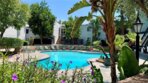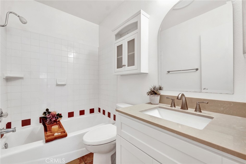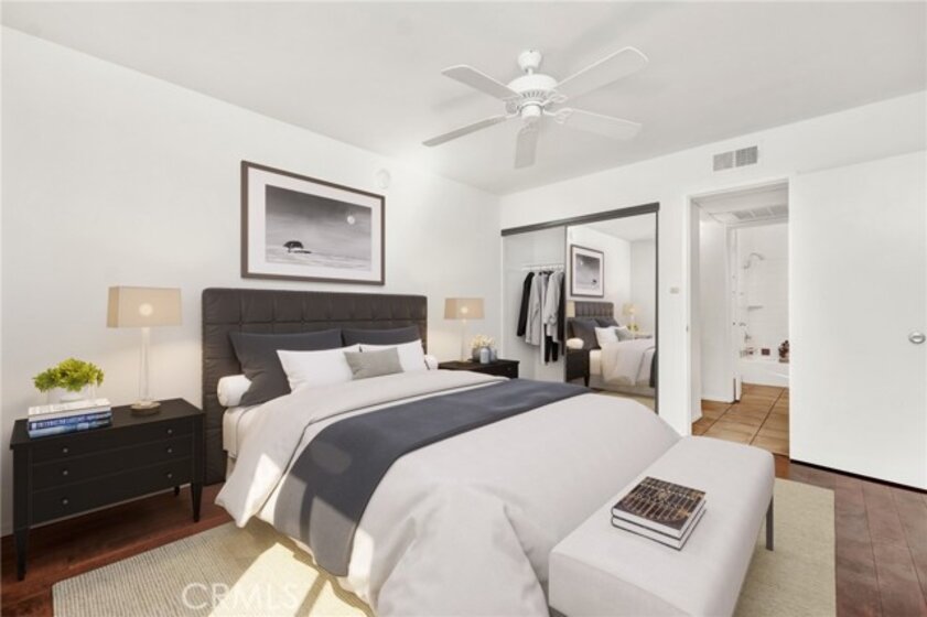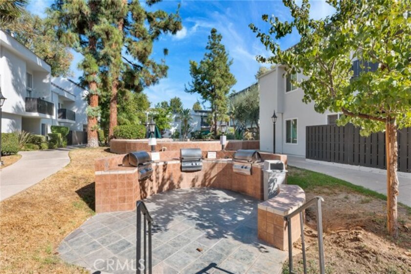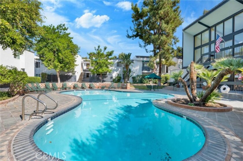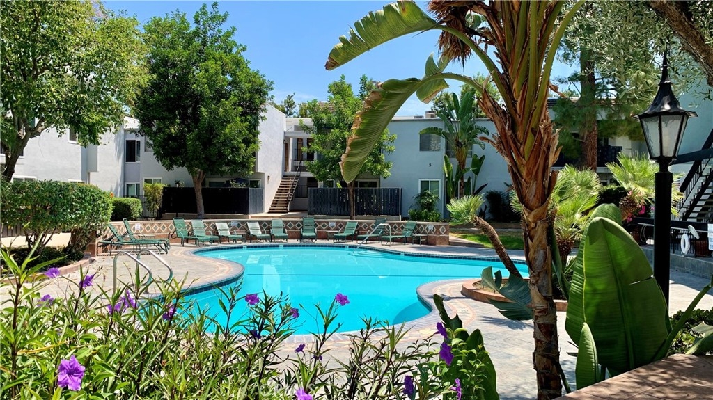 Welcome to 18645 Hatteras St., Unit 184, in the heart of Tarzana—where the best of Southern California’s easy lifestyle awaits at California Place. This resort-style gated community offers a sparkling pool and spa, outdoor BBQ and cooking area, recreation room, fitness center, and beautifully maintained grounds accented by peaceful creeks and streams. This updated lower-level interior unit features a desirable open floor plan and enhanced comfort with dual-pane windows—an upgrade not found in every home within the community. Enjoy smooth ceilings, tile flooring in the dining area, kitchen, bath, and hallways, and attractive wood laminate flooring in both the living room and bedroom. The generous dining area, complete with a ceiling fan, flows seamlessly into the kitchen, showcasing quartz countertops, a newer dishwasher, and a convenient breakfast bar for casual dining. The spacious living room opens through a sliding glass door to a large private patio—ideal for relaxing or enjoying meals outdoors. The full bathroom has been tastefully refreshed with an updated vanity, countertop, and tiled tub. Storage is plentiful with a large hall closet and a mirrored wardrobe closet in the bedroom. HOA dues cover water, trash, gas, insurance, and maintenance of the lush grounds and resort-style amenities—making for truly low-maintenance living. With no stairs to navigate, the convenient layout provides comfortable, accessible living all on one level. Whether you're a first-time buyer, downsizing, or looking for a low-maintenance investment, this charming residence delivers both comfort and convenience in a serene setting. Ideally located just minutes from Ventura Boulevard and The Village in Woodland Hills, offering abundant shopping, dining, and entertainment, along with easy freeway access. This is a must-see opportunity to enjoy comfort, convenience, and community all in one place.