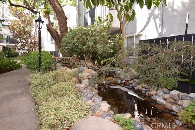 Two level loft style condominium with 16' ceiling, interior location, spacious corner unit, neighbors only on one side, in a very quiet location. The balcony is great for casual dining or coffee. This is resort living in the beautifully landscaped California Place complex, where creek water features are throughout the complex. The grounds are well kept. There is a pool, spa, & barbeques. The clubhouse has a gym (weights, stationary cycle, etc.), sauna, pool table, cafe tables, and meeting area. There is a community laundry room. Convenient location: shopping, restaurants, and public transportation are nearby.