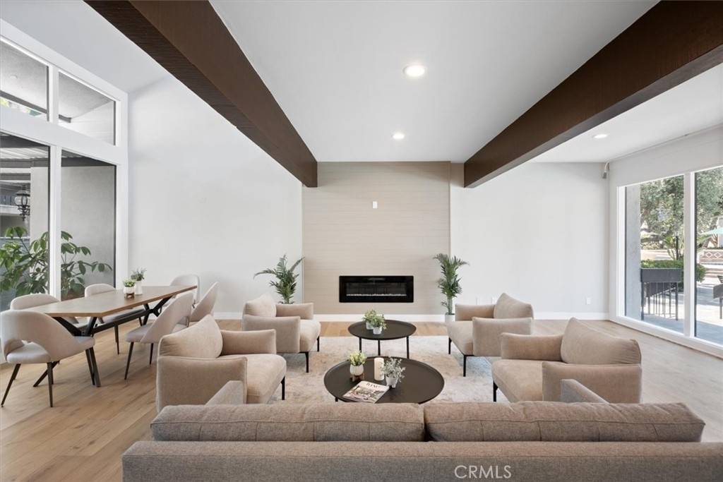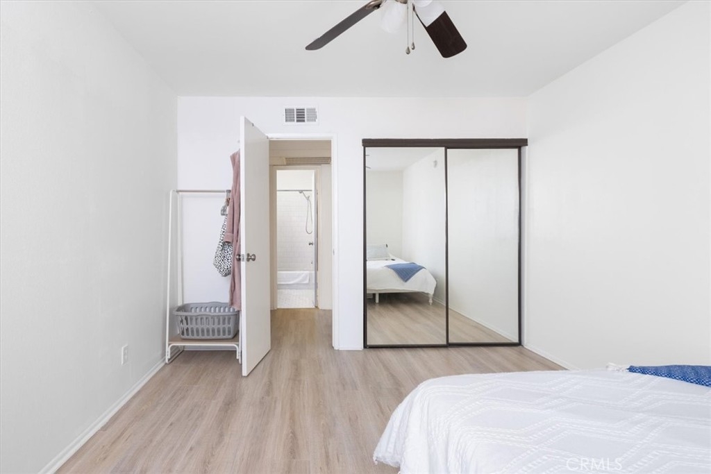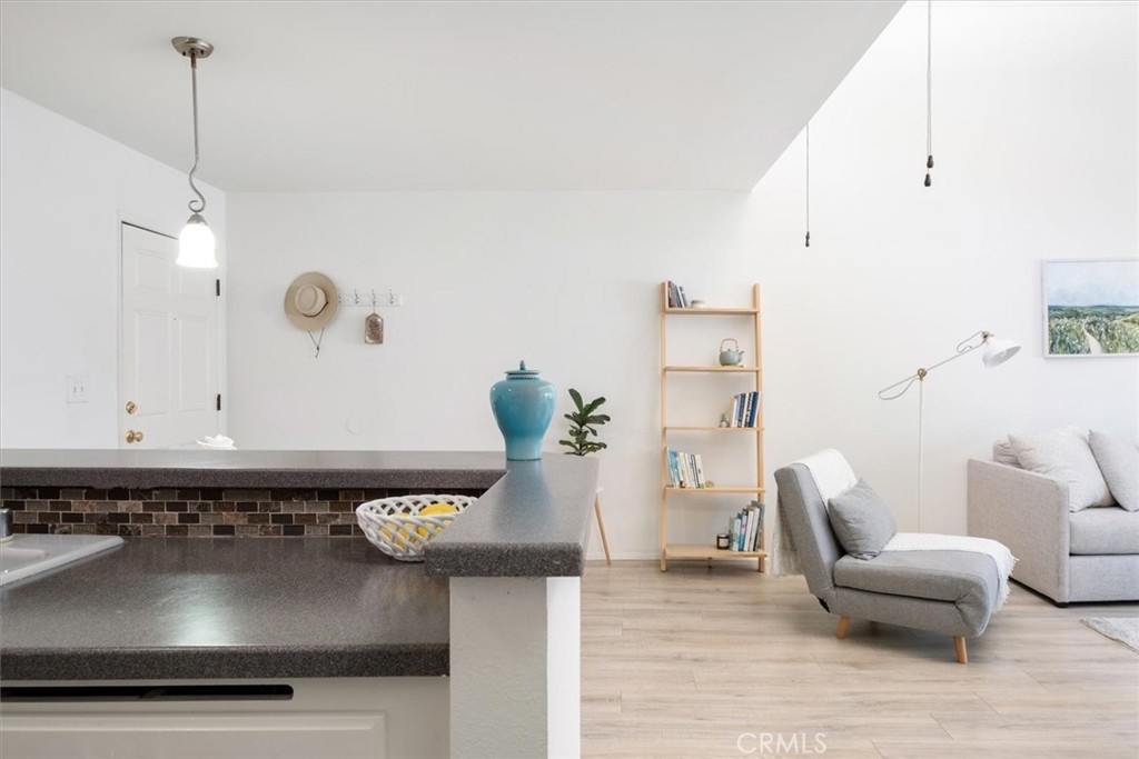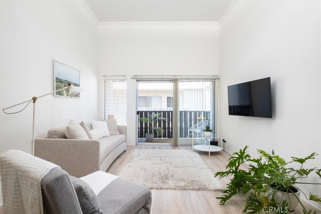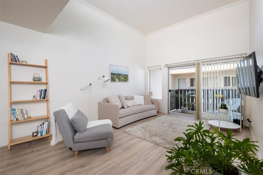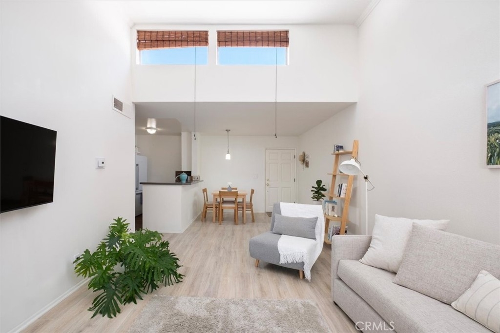 Welcome to this quiet, pristine, light-filled sanctuary in Tarzana. This rare unit is walking distance to Ventura, but nestled in one of the most tranquil, beautifully landscaped and well appointed condominium complexes in the area. Light, beachy floors, high ceilings, and an open concept lend a wonderful, airy feel to this corner unit with tons of natural light. Sitting on the second floor of a two-floor building, the unit shares only one common wall. As you enter this peaceful haven, a charming kitchen and dining area sits to the right where you can prepare your favorite meals with ample counter space, a gas range, new fridge, and brand new dishwasher. Just beyond the kitchen is a spacious living area showered in light thanks to extremely high ceilings, as well as extensive wall space to display artwork and photos. The nice sized balcony, attached to the living room, is the perfect spot for your morning cup of Jo. Kick your feet up and look down upon the tree-lined grounds of the complex. Down a small hallway, you will find a full bath and a second sliding closet with lots of storage space. Then you will find a lovely, spacious bedroom, teaming with light and a second large sliding closet. The location of this unit is one of the most quiet areas in the complex. In addition, there are two tandem parking spots and a separate small storage unit in the complex to store your suitcases, etc. The grounds and pool are extremely well kept, and the complex hosts a wide assortment of amenities including: a pool, spa, barbecues, and a clubhouse equipped with a small gym for morning workouts, separate men's/women's saunas to unwind, a pool table, and more. Walking distance to Tarzana Village, which boasts Laidrey Coffee, Anita's Gelato, a future Trader Joe's, and more! This is a must-see GEM and will go quickly!