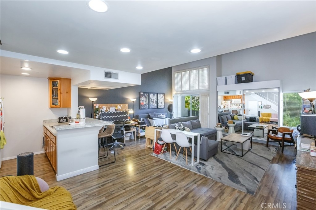 Welcome to this adorable one bedroom one bath condominium with nearly 800 square feet of open living space in the heart of Tarzana. As you walk in experience soaring ceilings, several windows filling the space with natural light, inviting paint selections and beautiful laminate flooring. The great room is spacious and features a large closet for extra storage, recessed lighting & gorgeous plantation shutters. The kitchen has been upgraded with granite counters, newer appliances and a large bar seating area. Upstairs you will find a loft style bedroom with a generously sized en-suite bath & additional walk-in closet. The grounds of the condominium are lush with tropical greenery and the pool area is the perfect place to lounge and BBQ. Close to shopping & easy access to freeways.