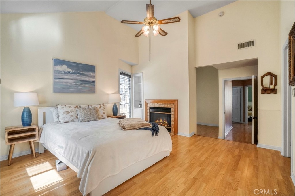 This expansive, light-filled tri-level townhouse offers over 2,300 square feet of thoughtfully designed living space, perfect for any buyer. With only one shared wall, this home features 3 spacious bedrooms, 2.5 bathrooms, and a versatile bonus room. Upon entry, you’re welcomed by a large living room with a cozy fireplace that flows seamlessly into a formal dining area. All bedrooms are conveniently located upstairs, including a master suite that boasts its own fireplace, a comfortable sitting area, a walk-in closet, a private balcony, and a generously sized bathroom. The bonus room near the garage provides an ideal space for a home gym or office. Additional highlights include a private, attached two-car garage and in-unit laundry for convenience. A wrap-around terrace offers privacy and ample space for entertaining, making it perfect for barbecues and gatherings. Community amenities include a pool, clubhouse, and tennis courts, with a new roof installed in 2024. This unit is ideally situated in one of the most private and secure spots within the complex, offering enhanced tranquility and convenience.