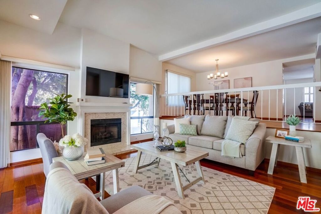 Terrific tri-level townhome located in the highly desirable Tarzana Courts. Large private patio perfect for relaxing on the weekends sets the tone of this light and bright three bed & three bathroom home. Includes hardwood floors throughout w/only one common wall. Living room features high ceilings, fireplace, recessed lights & glass sliders to the patio. Steps lead to the formal dining area, wet bar and guest powder. Updated kitchen with granite counters, ample cabinet space & stainless steel appliances open to breakfast area and den/office. Spacious primary bedroom has windows on three sides, vaulted ceilings, a walk-in closet. and large balcony overlooking a park-like setting of plush landscaping and cozy park benches. Primary bathroom w/separate jetted tub & shower, dual sinks & romantic skylight. Second and third bedrooms share hallway bath with tub/shower combo. Large ground-floor laundry/utility room features SxS washer & dryer and floor to ceiling built-in cabinets for storage. Direct access 2 car garage includes additional storage space. HOA amenities include community pool & spa, clubhouse, N/S tennis courts and guest parking on west side of complex. Waiting for you to move in!