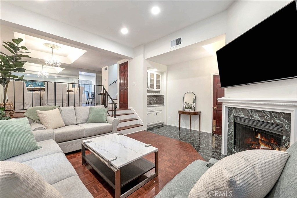 Welcome to resort-style living at Tarzana Courts, a hidden gem tucked away behind private gates. This small, exclusive community of just 58 townhomes offers everything you need for a tranquil and secure lifestyle, including lush landscaping, a sparkling pool and spa, clubhouse, and tennis court. Nestled in a park-like setting, this townhome faces beautiful open space, ensuring peace and privacy. Step inside and be greeted by soaring vaulted ceilings and an abundance of natural light, creating a bright and airy modern atmosphere throughout. The recently remodeled kitchen is both modern and functional with newer stainless steel appliances and stone countertops, making meal prep a joy. Whether you're unwinding by the fireplace in the cozy living room or enjoying the fresh air on your spacious private patio, this home offers the perfect retreat. When it's time to entertain, the open floor plan flows seamlessly for easy gatherings with family and friends. The second floor is dedicated to the bedrooms, including a luxurious master suite with vaulted ceilings, a large walk-in closet, and its own fireplace. The master also features a bonus seating area or office space with a vaulted window for extra natural light, plus a private balcony overlooking the lush green surroundings. Two additional spacious bedrooms are down the hall, offering plenty of privacy for loved ones. The attached two-car garage provides direct access to the home and includes laundry facilities and electric car charging, ring doorbell and alarm for added convenience. Located just minutes from top-rated schools, fabulous restaurants, shopping, Gelson's Market, Tarzana Providence Cedars Hospital, Braemar and El Caballero Country Clubs and easy access to Ventura Blvd and the 101 Freeway, this home is ideally situated for both comfort and convenience. You don't want to miss the opportunity to make this stunning townhome yours today!