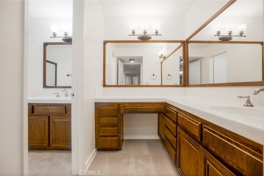 Must see this spacious condo in an immaculately kept, 24 unit, primarily owner-occupied complex. Enter through beautiful double doors on the first floor into a spacious, open floor-plan with a full laundry room, two on-suite bedrooms separated by the living room for maximum privacy. Each bedroom has both walk-in and wardroom closets with access to the private patio and the over-sized master boasts a separate mirrored vanity area with sink and lots of counter space adjacent to the master bath. The unique open kitchen design with ample cabinets and dining area has an expansive double-duty granite slab countertop which serves both the living room and kitchen- excellent for entertaining! The focal point of the living room is a fireplace with lots of dramatic possibilities. New window coverings throughout, loads of storage space and covered parking. Needs some updating but the floor-plan and the “bones” are there, ready for your personal touch. Great opportunity!!