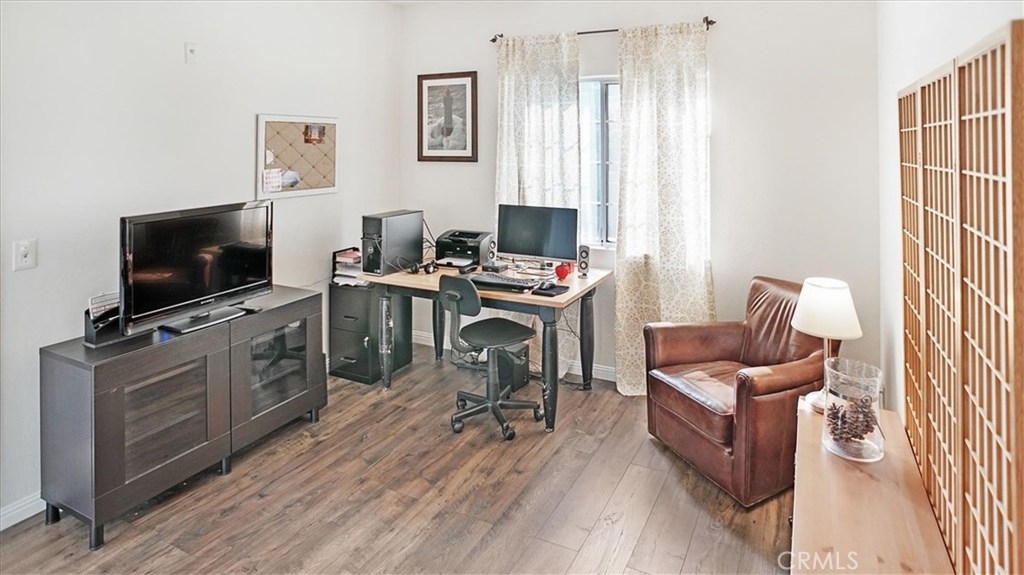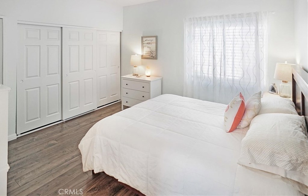 This vaulted-ceiling, open floor plan condo is extremely welcoming and light-filled with a nice balcony off of the living room. Each of the two bedrooms is a suite with its own bath. Gorgeous engineered wood floors, newly painted kitchen, and separate clothes washer and dryer in the unit. Located south of the freeway, this excellent location is a couple of blocks from Ventura Blvd, shopping, Whole Foods, and restaurants. Plenty of street and guest parking.