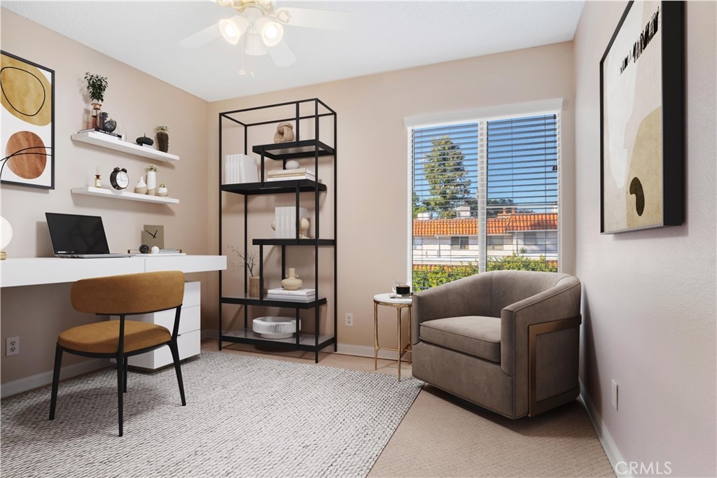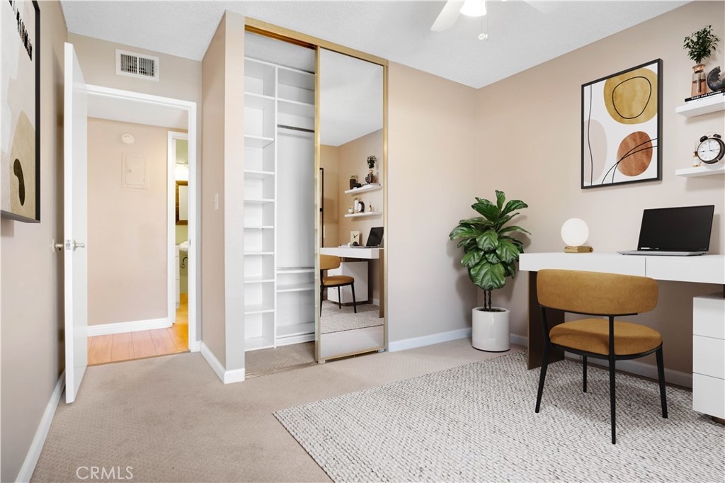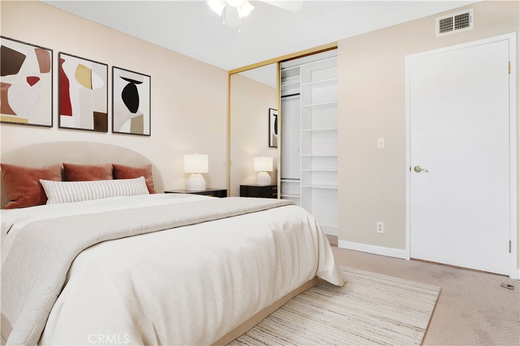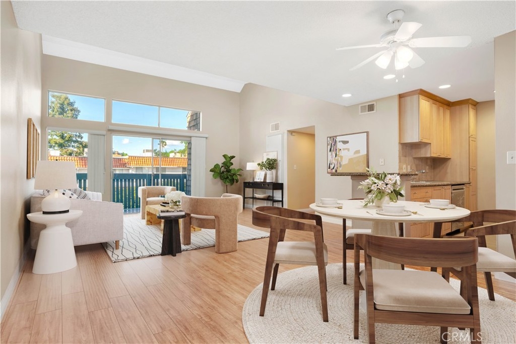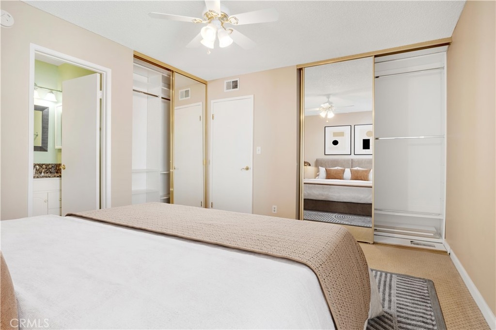 This beautifully remodeled 3 bedroom 2 bath upper unit condo is located in a gated community and offers the perfect blend of modern updates and comfortable living. Featuring an open floor plan with recessed lighting and soaring cathedral ceilings in the living room, this home is designed for both relaxation and entertainment. The kitchen is a chef's dream, boasting brand-new stainless steel appliances which include a stove, oven, dishwasher and built-in microwave, as well as sleek granite countertops, and ample cabinet space for all your storage needs. The condo offers 3 generously sized bedrooms, each equipped with ceiling fans, custom closets, and new blinds for added convenience and style. The Primary suite features an updated en-suite bathroom and the additional 2 bedrooms share a nice sized updated bathroom. Step outside to your private balcony, where you'll find additional storage space, perfect for keeping your home organized. The unit also includes two assigned parking spots for your convenience. The gated community offers great amenities, including a sparkling pool, relaxing hot tub, and a community laundry room. This prime location is just minutes from the freeway, local shopping, and some of the best dining on Ventura Blvd, offering the ultimate in convenience and lifestyle. Don't miss the opportunity to call this beautiful condo your new home!