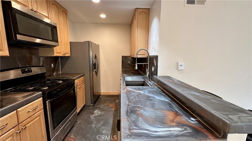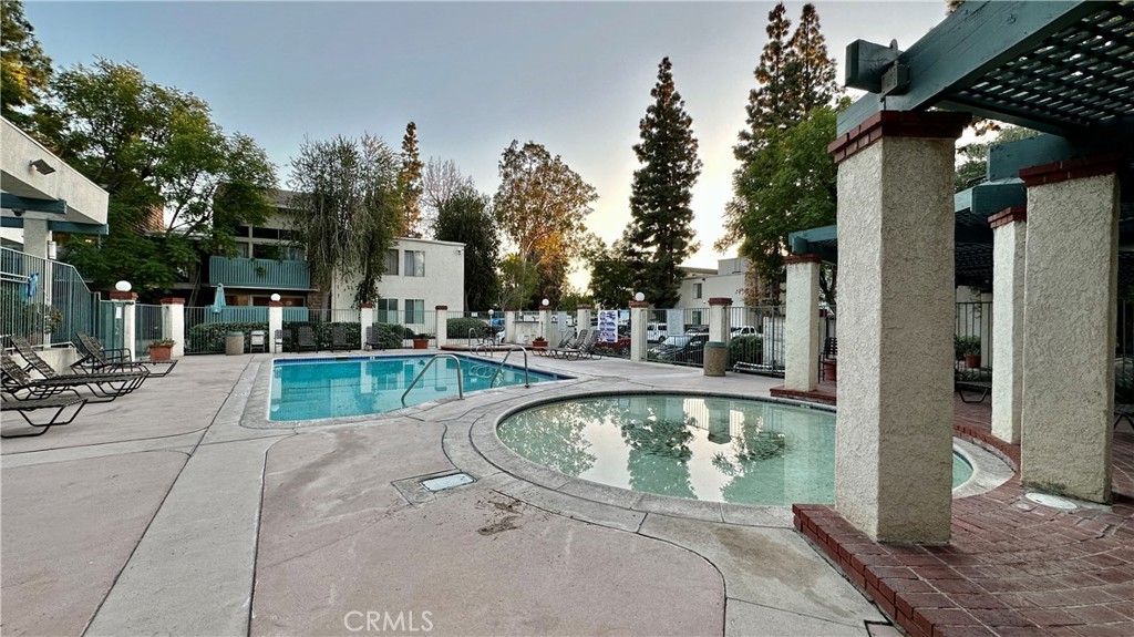 PRICE IMPROVEMENT! CASH PURCHASE OR HARD MONEY LOAN ONLY. Prime Tarzana desirable upper, single level condo with soaring ceilings and tons of natural light in the manicured and gated complex of “California Village”, just minutes from easy freeway access, Tarzana Hospital, shopping, and dining along Ventura Blvd, and so much more! This 3 bedroom, 2 bath unit features FRESH INTEROR PAINT, NEWER wood laminate floors just installed in the main living area, smooth ceilings with high windows, a balcony, recessed lighting and a updated kitchen with custom designer flooring and counter tops, large stainless steel basin sink and a convenient breakfast bar. Primary suite with his & her closets and a private bath with pedestal sink and shower. Ample sized secondary bedrooms and there is a full hall bath. Covered, assigned 2 car tandem parking and community has pool, spa, recreation room and common grounds with rose garden. This one won’t last long!