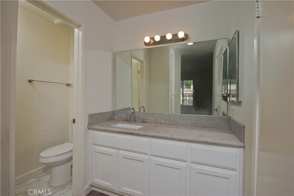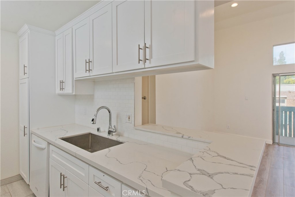 Beautifully remodeled and rare top floor single level condo! Recently updated with new kitchen cabinetry and quartz counters, new tile floors, new laminate flooring throughout, baseboards, new closet sliding doors, updated baths and fresh paint. Highlighted with vaulted ceilings, clerestory windows and loads of natural light. Enjoy the stunning open concept kitchen that overlooks the expansive dining and living areas with private patio balcony and extra storage room. Encompassing two spacious bedrooms that include its master suite with dressing area and walk-in closet. Includes two parking spaces and located in the beautiful and gated California Village Community, surrounded by manicured grounds with green belt areas, gazebo courtyard, sparkling community pool with lounge area, kids pool and clubhouse. Located within a short stroll to boulevard shops, restaurants and transportation. Enjoy all this turn-key residence has to offer! (Complex is not FHA approved)