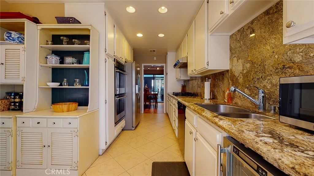 Location! Location! Location! Spacious 2 bedroom and 2.5 bathroom 1352 sq ft, two-story townhouse with central atrium that provides great light throughout the home. Fully upgraded kitchen includes a breakfast nook and balcony overlooking the tree-lined street, granite counter-tops, dishwasher, built-in stove and wine fridge! Also features a breakfast area and opens to a spacious dining room. Large living room with fireplace connects to another balcony and a private patio, perfect for entertaining and BBQ, really feels like a single family home. Master bedrooms with bathroom, California closets, fireplace and high ceilings. Laundry is upstairs with another nice size bedroom and full bath. Community has pool and 2 car subterranean garage with plenty of visitor parking. Low HOA, this home is close to Ventura blvd restaurants, shopping and transportation. Don't Miss Out! Check out the 3D Virtual Tour: https://my.matterport.com/show/?m=ugn7GR6n77T&mls=1