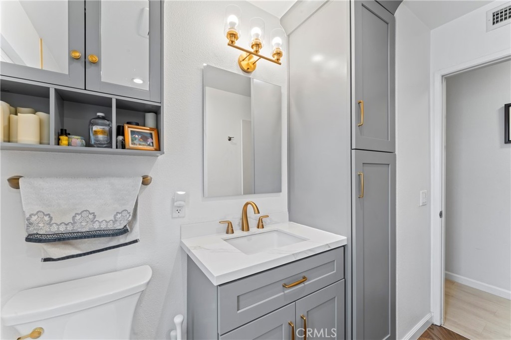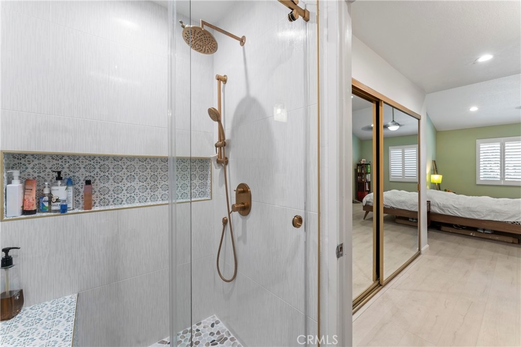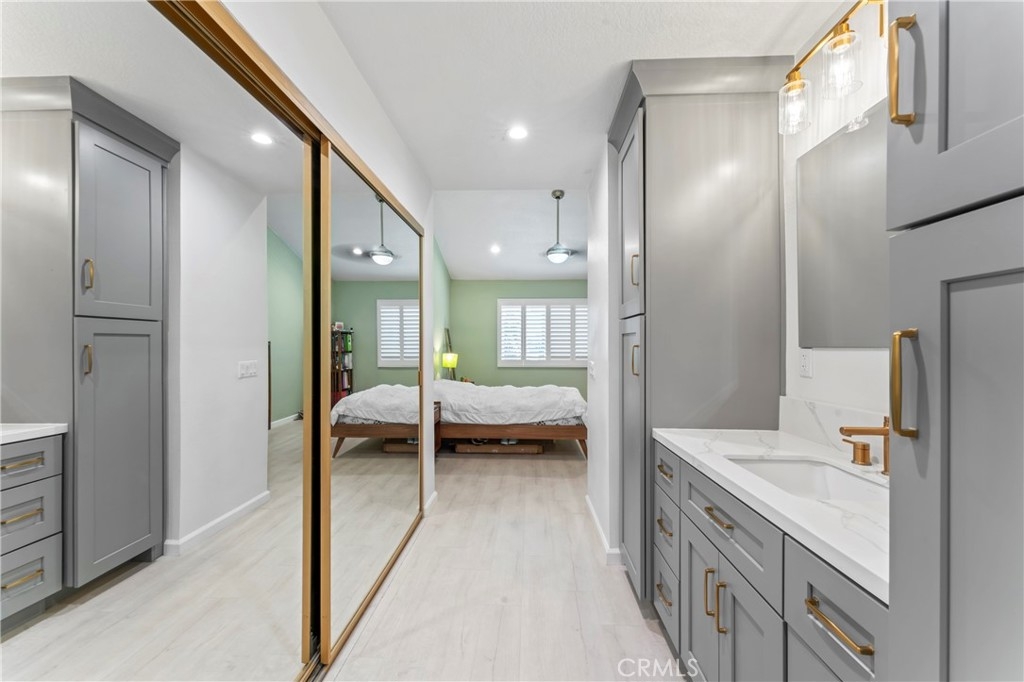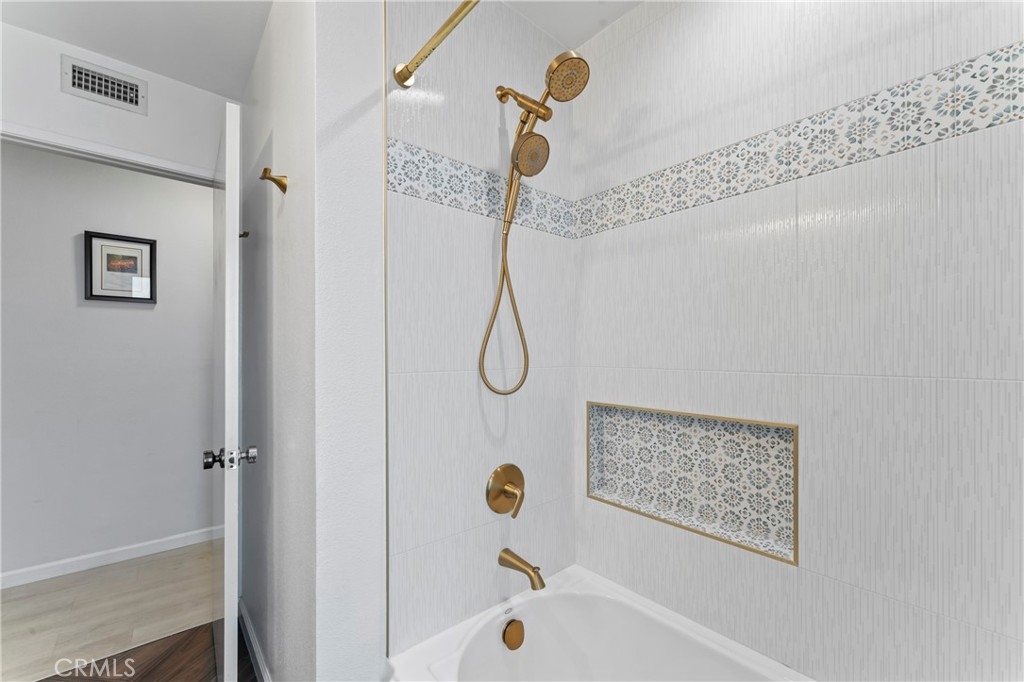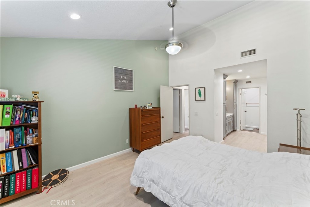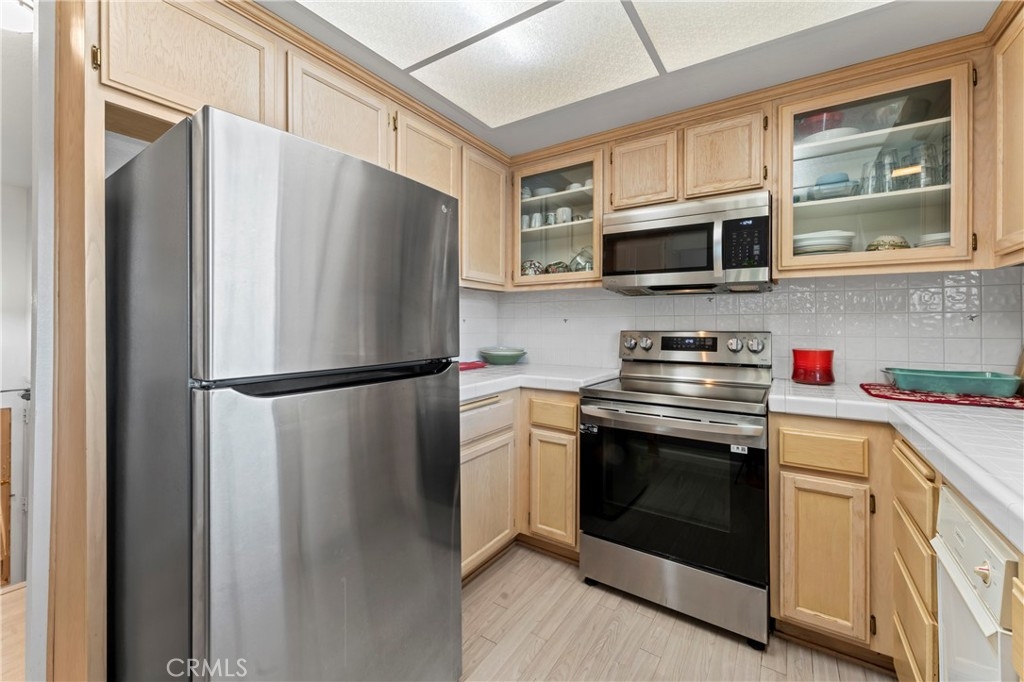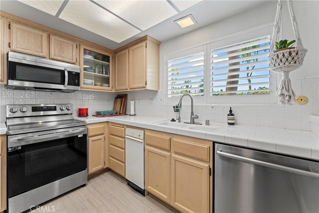This fully upgraded end-unit townhome lives like a single-story home, with just seven steps separating the main living area from the upstairs bedrooms. Light-filled and meticulously updated, this home is move-in ready and offers modern convenience and stylish design. Step inside to find newer laminate/vinyl flooring throughout, with extra material included for the new owner. The freshly painted interior is complemented by updated light fixtures, including sleek recessed lighting in the living room and bedrooms. The primary suite boasts newer recessed lights and a ceiling fan for added comfort. Newer dual-pane windows with plantation shutters not only add a touch of elegance but also improve energy efficiency. The fully renovated bathrooms feature custom cabinetry for extra storage, beautiful herringbone pattern tile floors, and modern exhaust fans. A luxurious KOHLER Cast Iron soaking tub completes the spa-like feel. The kitchen has been updated with a newer dishwasher, refrigerator, microwave, and an electric range with an air-fry feature. An under-sink reverse osmosis water filtration system and a newer InSinkErator waste disposal system add further convenience. In the two car attached garage with direct access into the home, you'll find a newer EV charging station and a newer garage door with remote controls. Newer washer and dryer are included. The home has been well-maintained with the gutters cleaned, and the main sewage line connected to the garbage disposal was cleaned in May of this year. With thoughtful upgrades and a layout designed for easy living, this townhome is the perfect blend of comfort and style. Schedule your private showing today—this home won’t last long!