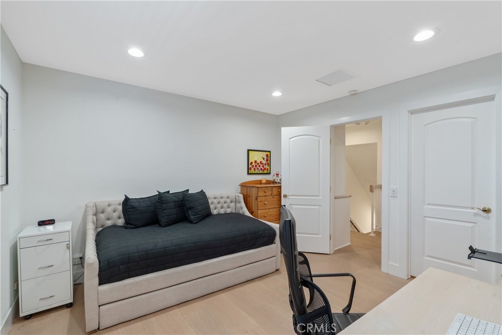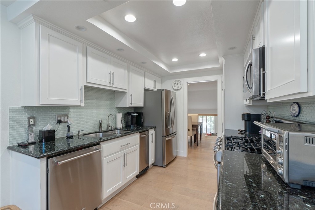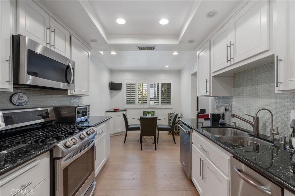 Welcome to your dream home! This newly remodeled Encino Village townhome offers you all the modern amenities you desire. Every detail has been tended to and this light and bright home has been meticulously cared for. Upon entry into the community, you will notice that the unit is conveniently located near one of the complex's pools, but distanced enough for a serene living experience. Beyond the gated courtyard equipped with a BBQ and custom Saltillo tiles, enter into the first living space with a beautiful fireplace. New light wood floors flow throughout the home and create a warm, inviting atmosphere. Stairs from the entry and living room invite you to the full sized dining room and updated kitchen, which can be found on the main floor. The gourmet kitchen is a chef's delight, top-of-the-line stainless steel appliances, custom cabinetry and sleek countertops. Enjoy meals in the charming breakfast nook or entertain guests in the oversized dining room. This main floor also has one bath and one bedroom, which has been converted into a cozy TV room and could easily be converted back to a traditional bedroom. Upstairs you will find 2 additional bedrooms, each with an en-suite bath and generous amounts of natural light that pour in from all angles. The primary bedroom has a newly remodeled vanity area adjacent to the primary bathroom and wall-to-wall closets. Enjoy direct access from your private 2-car side-by-side garage, equipped with laundry hookups and TONS of built-in storage. This home checks ALL of your boxes for quiet and private living, offering you everything you can ask for in a fantastic, quiet community. Multiple pools, sports court, rec room and generous amounts of visitor parking make this a wonderful place to call home. Located just west of Lindley Avenue, you can easily access the 101 and all that the San Fernando Valley offers. Trader Joe's, Ventura Boulevard, gourmet restaurants and markets are all a short drive away.