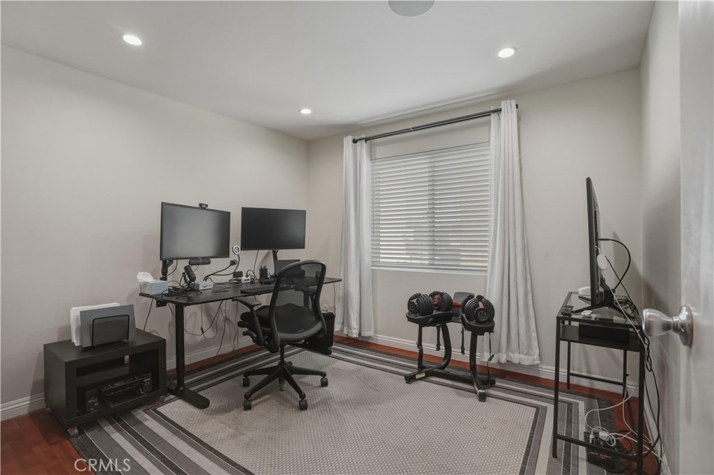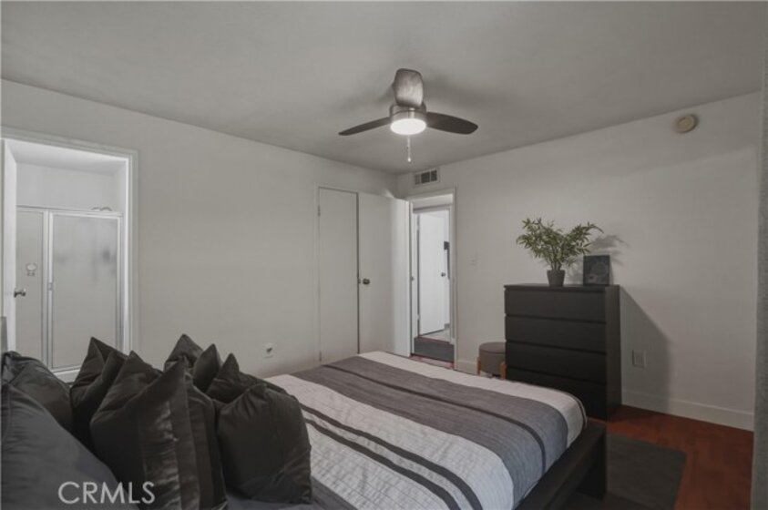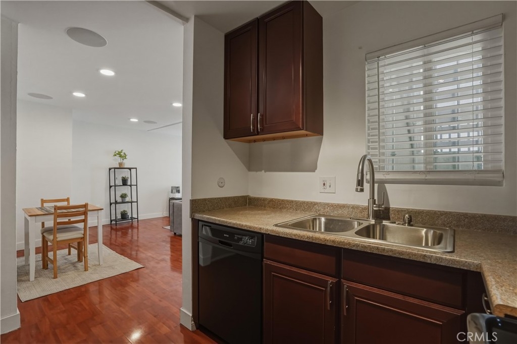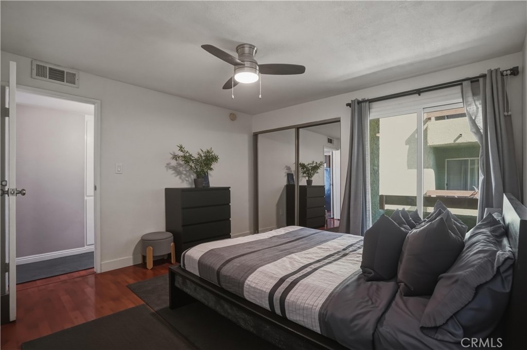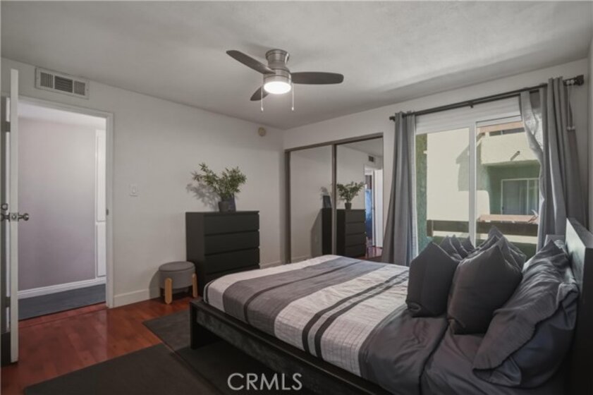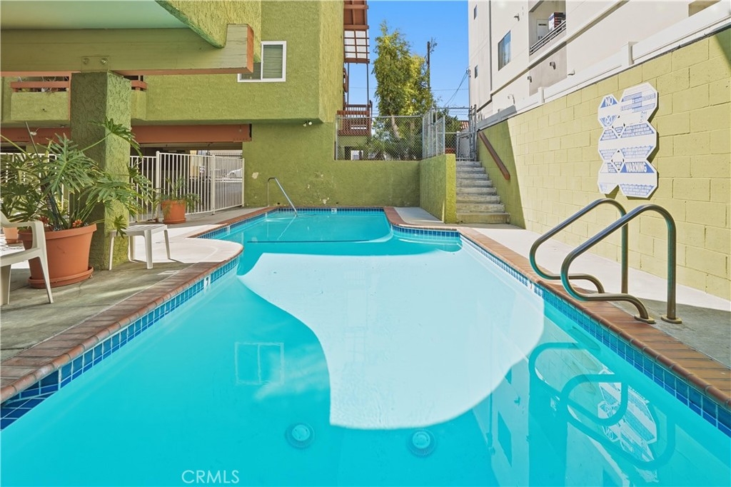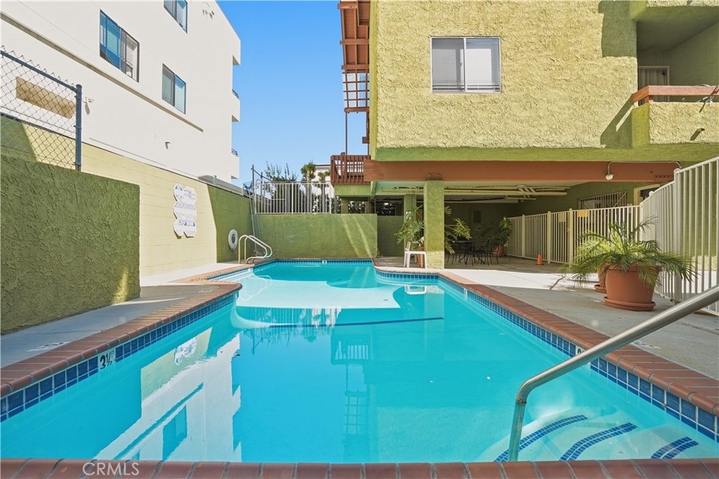 Beautiful 2-bedroom, 2-bath condo located in a gated community. This light-filled first-floor end unit offers an open floor plan with newer windows (2022), recessed lighting, built-in living room speakers, and laminate flooring throughout. The kitchen is equipped with a dishwasher and built-in microwave, making it both functional and convenient. The primary suite features two closets, an en-suite bathroom, and a private balcony overlooking the pool. Additional highlights include secured building access, two covered tandem parking spaces behind a security gate, community laundry, and a beautifully maintained complex with a sparkling pool. Only 28 units in the community and conveniently located near shopping, dining, parks, and schools, this move-in ready condo offers an exceptional opportunity in a highly desirable location.