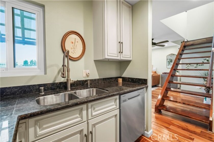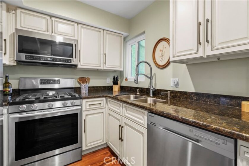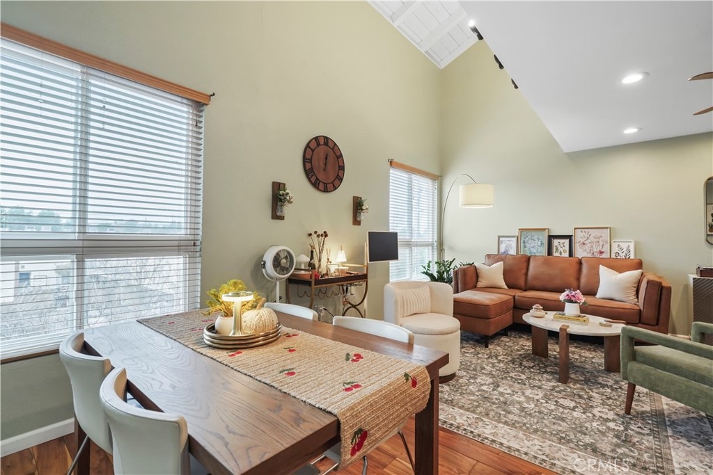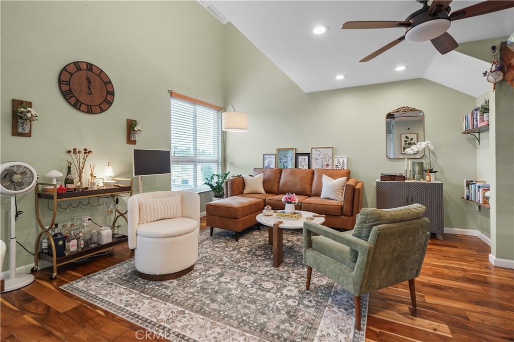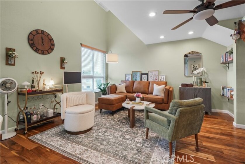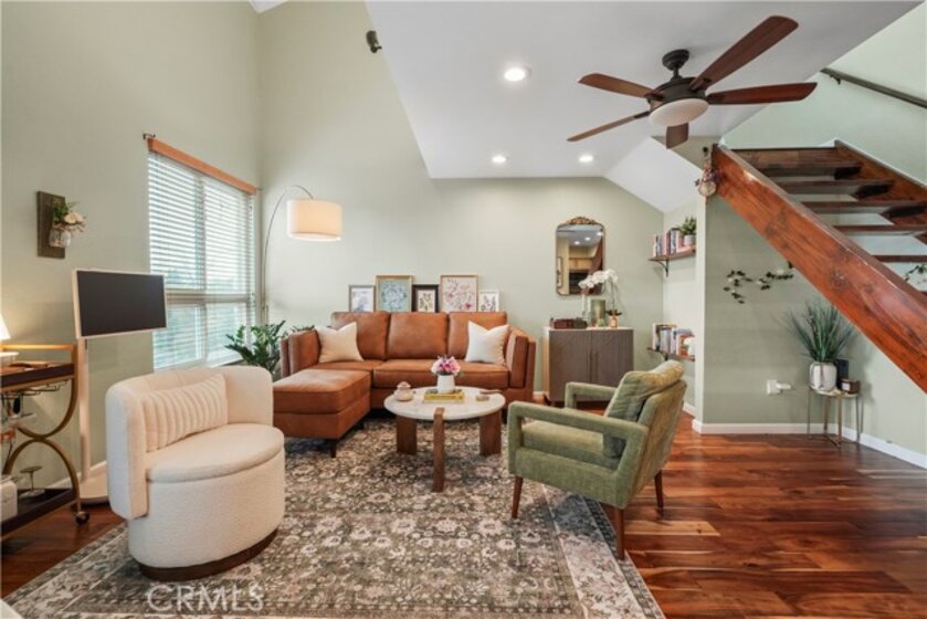 Gorgeous upgraded 2 + 2 condo plus LOFT located in a gated community. This light-filled second-floor end unit features a versatile loft—ideal for a creative studio, home office, or flex space. The open floor plan showcases brand new windows, recessed lighting, and beautiful hardwood floors throughout. High vaulted ceilings enhance the sense of space and openness throughout. The kitchen is equipped with granite countertops and modern appliances, perfect for everyday living and entertaining. Primary bedroom features 2 closets, en-suite bathroom and a private balcony. Additional highlights include in-unit washer and dryer, two covered tandem parking spaces behind a security gate, and a well-maintained complex with a pool. Community consists of just 28 units. Low HOA dues. Truly a one-of-a-kind opportunity!