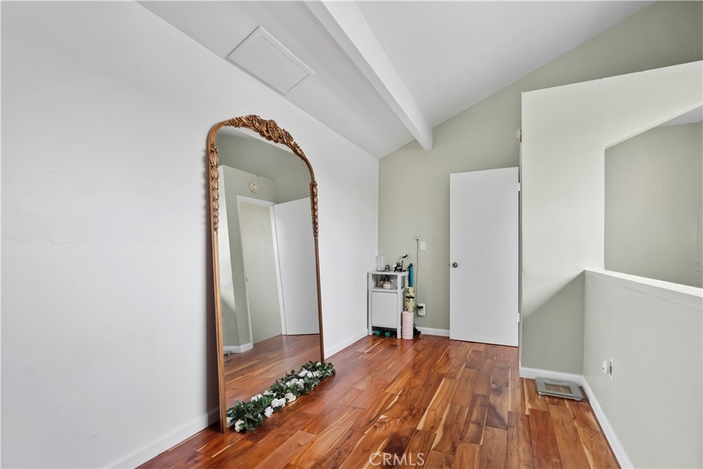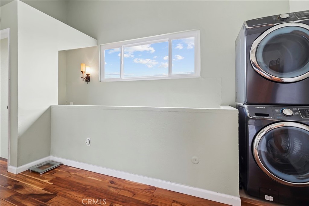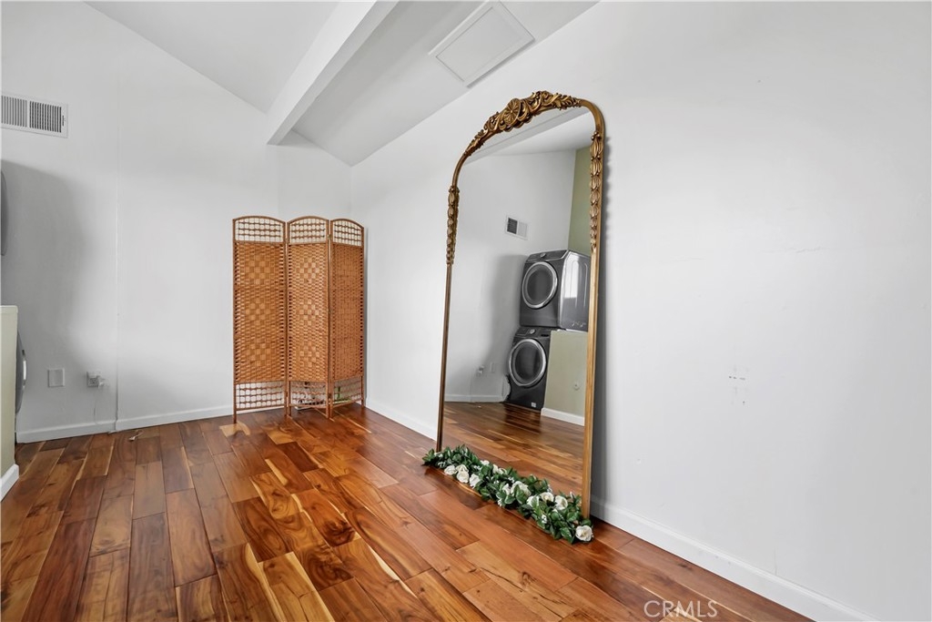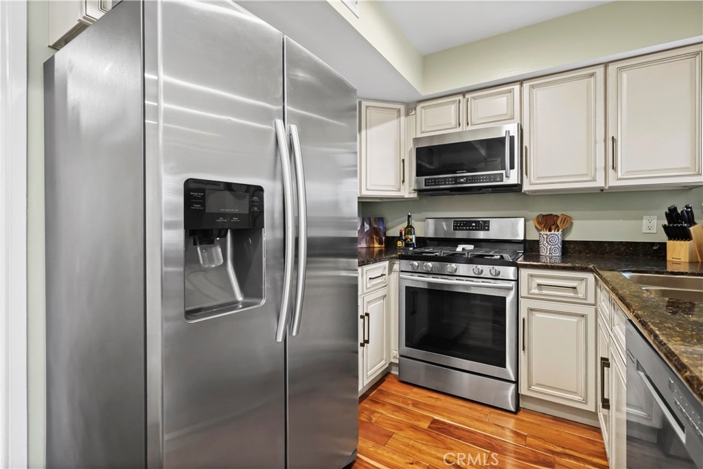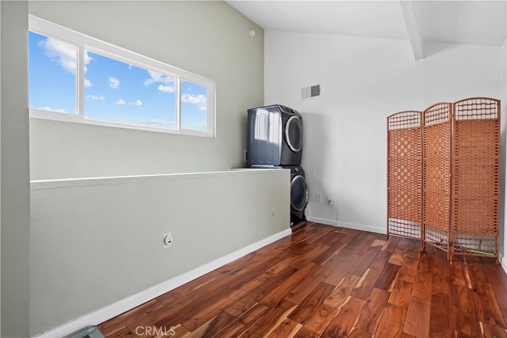 Gorgeous upgraded 2 + 2 condo plus LOFT located in a gated community. This light-filled second-floor end unit features a versatile loft—ideal for a creative studio, home office, or flex space. The open floor plan showcases brand new windows, recessed lighting, and beautiful hardwood floors throughout. High vaulted ceilings enhance the sense of space and openness throughout. The kitchen is equipped with granite countertops and modern appliances, perfect for everyday living and entertaining. Primary bedroom features 2 closets, en-suite bathroom and a private balcony. Additional highlights include in-unit washer and dryer, two covered tandem parking spaces behind a security gate, and a well-maintained complex with a pool. Community consists of just 28 units. Low HOA dues. Truly a one-of-a-kind opportunity!