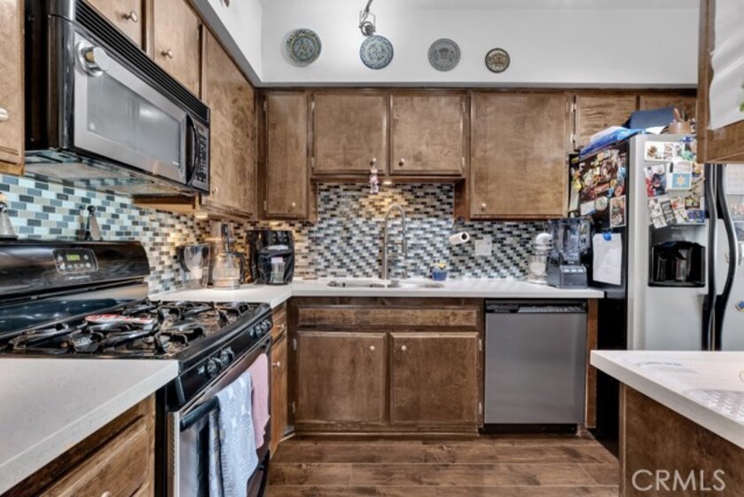 Welcome to this beautifully updated Tarzana townhouse, where soaring cathedral ceilings and a cozy fireplace create an inviting open-concept living space. Recently remodeled, the home features laminate flooring throughout, double-pane soundproof windows, and a modern kitchen with stainless steel appliances, quartz countertops, a mosaic glass backsplash, under-cabinet lighting, and custom ceiling fixtures. A spacious dining room, conveniently located just off the kitchen, provides an ideal space for easy entertaining. Upstairs, you’ll find two en-suite bedrooms and a laundry area with a high-efficiency front-load washer and dryer. Additionally, highlights include ample storage, central air and heat, a charming patio for indoor-outdoor living, and secure Butterfly MX smart intercom access. Side-by-side garage parking and guest spaces are included in the gated garage, and the prime location—nestled between Encino and Woodland Hills—places you across the street from Starbucks and a park, minutes from Ventura Blvd’s shops and dining, and close to the Westfield Topanga Mall and new Rams Village. Don’t miss this opportunity to call it home—schedule your private showing today!