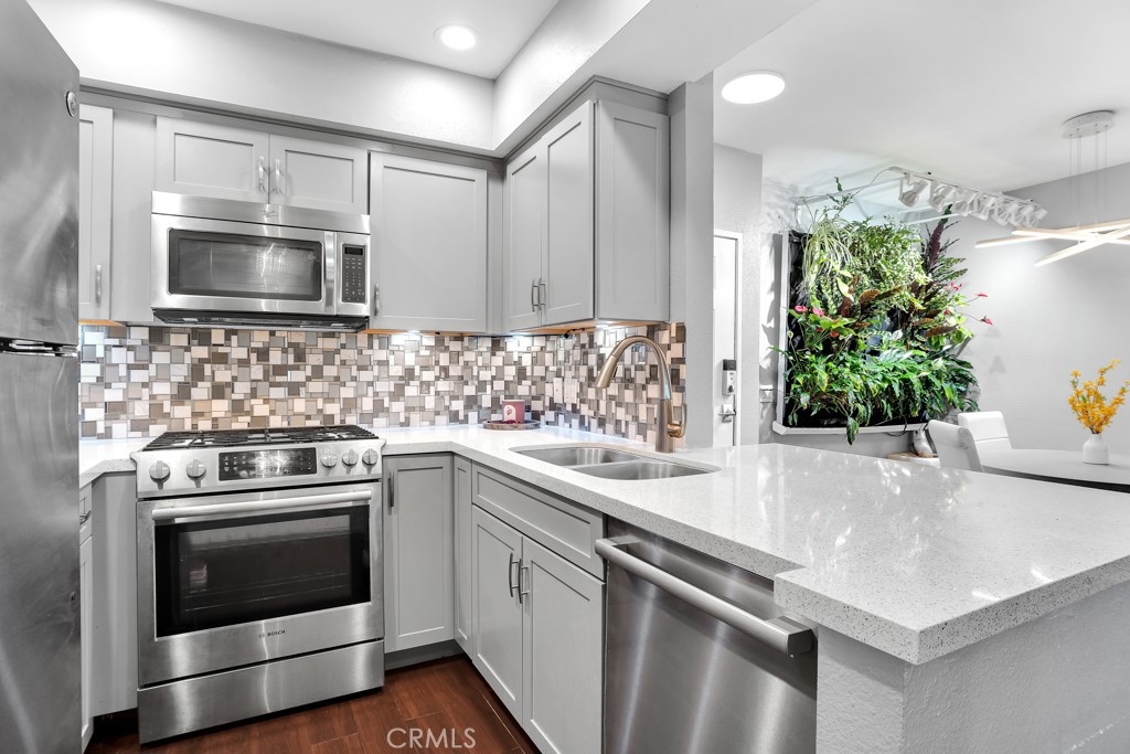 Welcome to your exceptional one-bedroom, one-bathroom condo nestled in the heart of Tarzana, where comfort meets convenience. The unit features a spacious primary bedroom and bathroom, accompanied by a fireplace with Fire Glass, and an open living room. Enjoy the convenience of an in-unit washer and dryer, along with Bosch Dishwasher and Stove, Quartz Countertops, Refrigerator, Microwave and upgrades throughout the unit. Updated porcelain tile flooring, recessed lighting, and a Samsung SmartThings that is compatible with all light switches, thermostat, and front door lock! This is also compatible with Google Home and Alexa. Step outside to discover the community amenities, including a pool and a gated, secured garage providing one spot along with guest parking. The complex has just upgraded its intercom system with ButterlyMX. This smart system provides a complete property access solution, offering a secure, convenient, and affordable way to manage and grant access on the go. This prime location is situated between Encino and Woodland Hills, just across the street from a Starbucks and a park. Ventura Blvd, renowned for its shops, restaurants, and entertainment options, is just minutes away, along with CSUN and Pierce College. Grocery shopping is a breeze with Trader Joe's, Gelson’s, Vons, and more. You have the Westfield Topanga Mall and the new Rams Village, ensuring you have everything at your fingertips. For commuters, there is easy access to the 101 and 405 freeways. Don't miss this opportunity and schedule your private showing today!